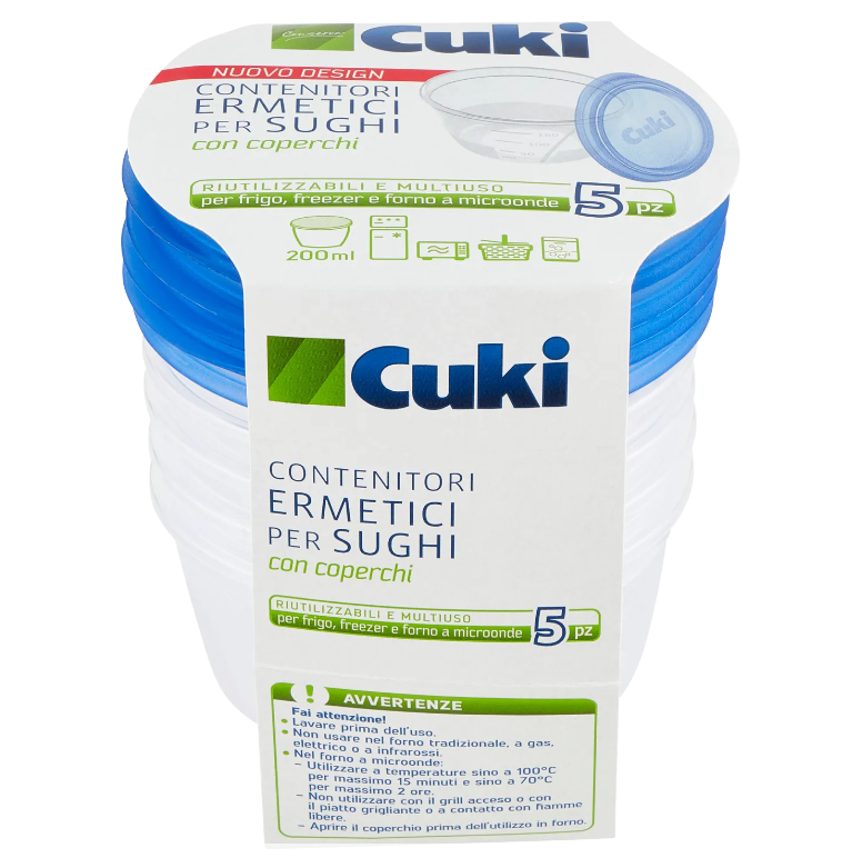 Cuki Conserva Contenitori Ermetici per Sughi con Coperchi 200 ml 5 pz