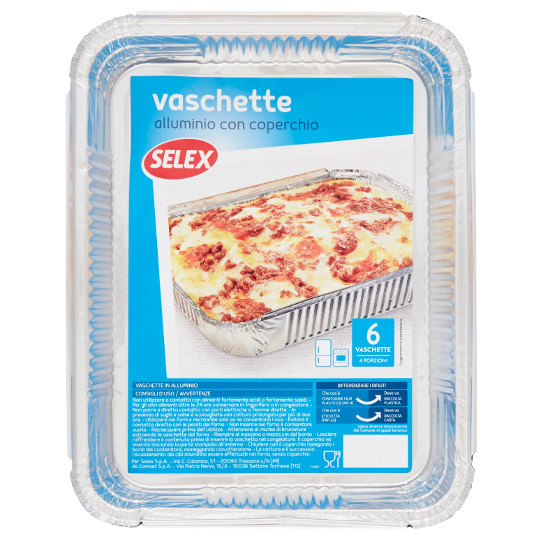 Selex Contenitore in Alluminio con Coperchio 6 pezzi 4porz