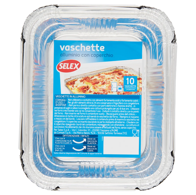 Selex Contenitore in Alluminio con Coperchio 10 pezzi 2porz