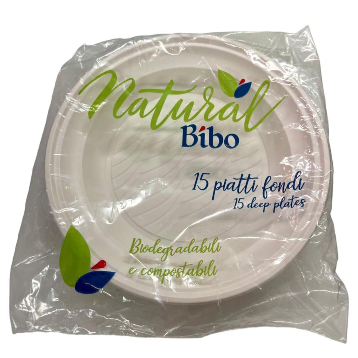 Natural Bibo Piatti Fondi Biodegradabili e Compostabili 15 pz